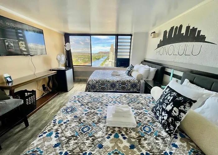 El *Rarelayout* 2Qn Beds Great For Groups es Friends, Waikiki, un apartamento climatizado que te ofrece todo lo que necesitas para unas vacaciones inolvidables en la vibrante Waikiki. Este acogedor apartamento destaca por su espaciosidad y su cómodo ambiente, ideal para grupos de amigos o familias que buscan disfrutar de la playa y la cultura hawaiana.